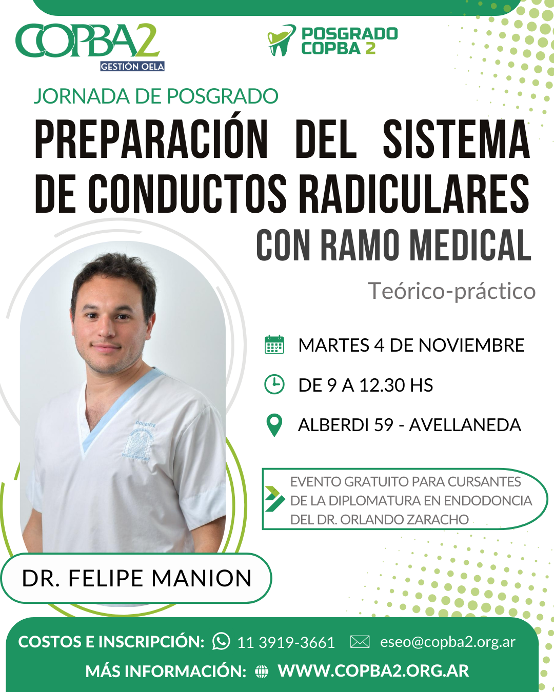 El Colegio de Odontólogos de la Provincia de Buenos Aires Distrito II (COPBA2) invita a sus matriculados a participar de una jornada de capacitación no