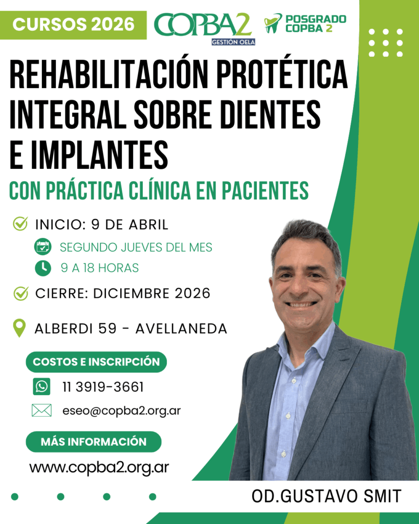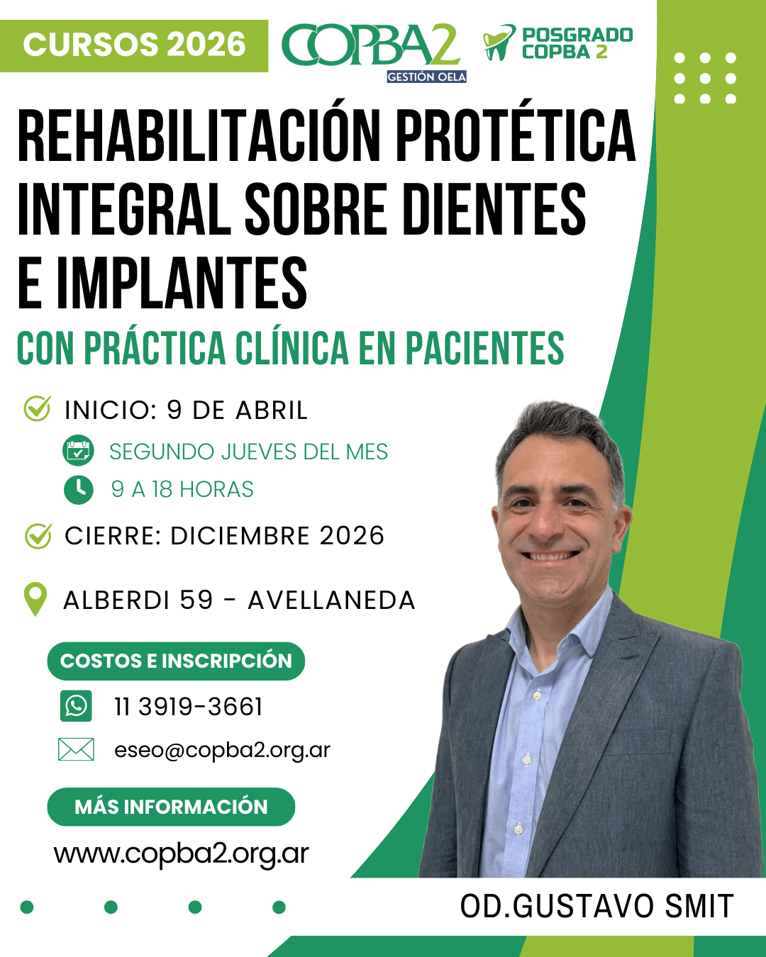 El Colegio de Odontólogos de la Provincia de Buenos Aires Distrito II (COPBA2) abre la convocatoria para un nuevo año de la Escuela de Posgrado