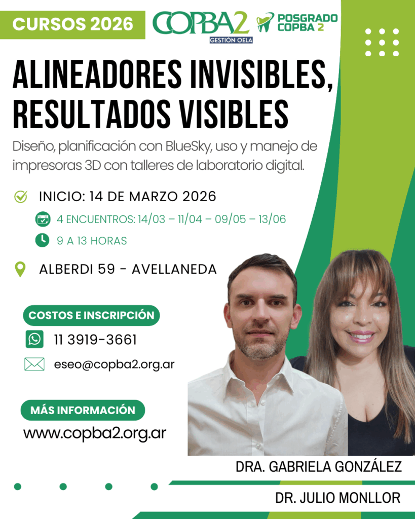 El Colegio de Odontólogos de la Provincia de Buenos Aires Distrito II (COPBA2) abre la convocatoria para un nuevo año de la Escuela de Posgrado con una renovada oferta de Cursos de especialización en las Clínicas del Colegio. En este caso, se trata del Curso de Endodoncia «Alineadores invisibles, resultados visibles», a cargo de la […]