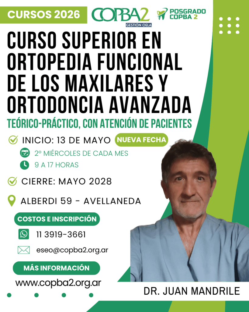 El Colegio de Odontólogos de la Provincia de Buenos Aires Distrito II (COPBA2) abre la convocatoria para un nuevo año de la Escuela de Posgrado con una renovada oferta de Cursos de especialización en las Clínicas del Colegio. En este caso, se trata de una nueva edición del «Curso superior en Ortopedia Funcional de los […]