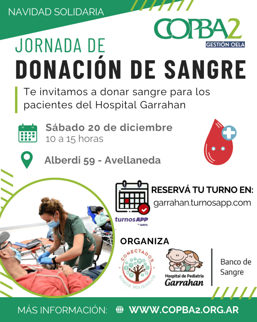 El Colegio de Odontólogos de la Provincia de Buenos Aires Distrito II (COPBA2), junto a la ONG “Conectados Somos Solidarios” y el Hospital Garrahan, organizará el sábado 20 de diciembre una nueva convocatoria de donación de sangre en las instalaciones de nuestro Colegio (Alberdi 59, Avellaneda). La iniciativa solidaria se realizará de 10 a 15 […]