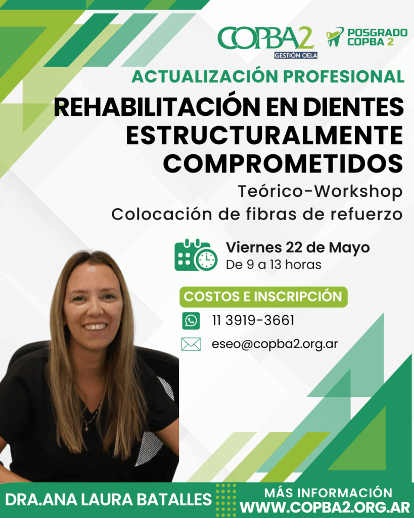 El Colegio de Odontólogos de la Provincia de Buenos Aires Distrito II (COPBA2) abre la convocatoria para un nuevo año de la Escuela de Posgrado con una renovada oferta de jornadas y cursos de especialización en el Colegio. En este caso, se trata de una jornada de actualización profesional bajo la temática: «Rehabilitación en dientes […]