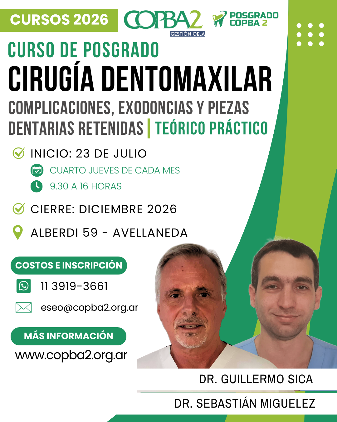 El Colegio de Odontólogos de la Provincia de Buenos Aires Distrito II (COPBA2) abre la convocatoria para un nuevo año de la Escuela de Posgrado con una renovada oferta de Cursos de especialización en las Clínicas del Colegio.
