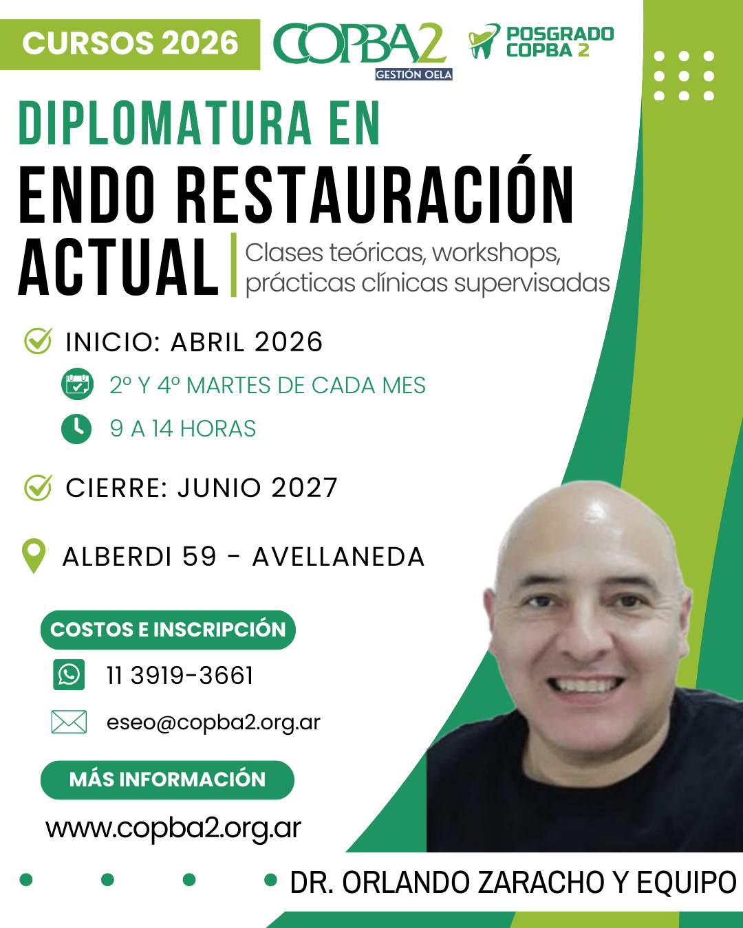 El Colegio de Odontólogos de la Provincia de Buenos Aires Distrito II (COPBA2) abre la convocatoria para un nuevo año de la Escuela de Posgrado con una renovada oferta de Cursos de especialización en las Clínicas del Colegio.