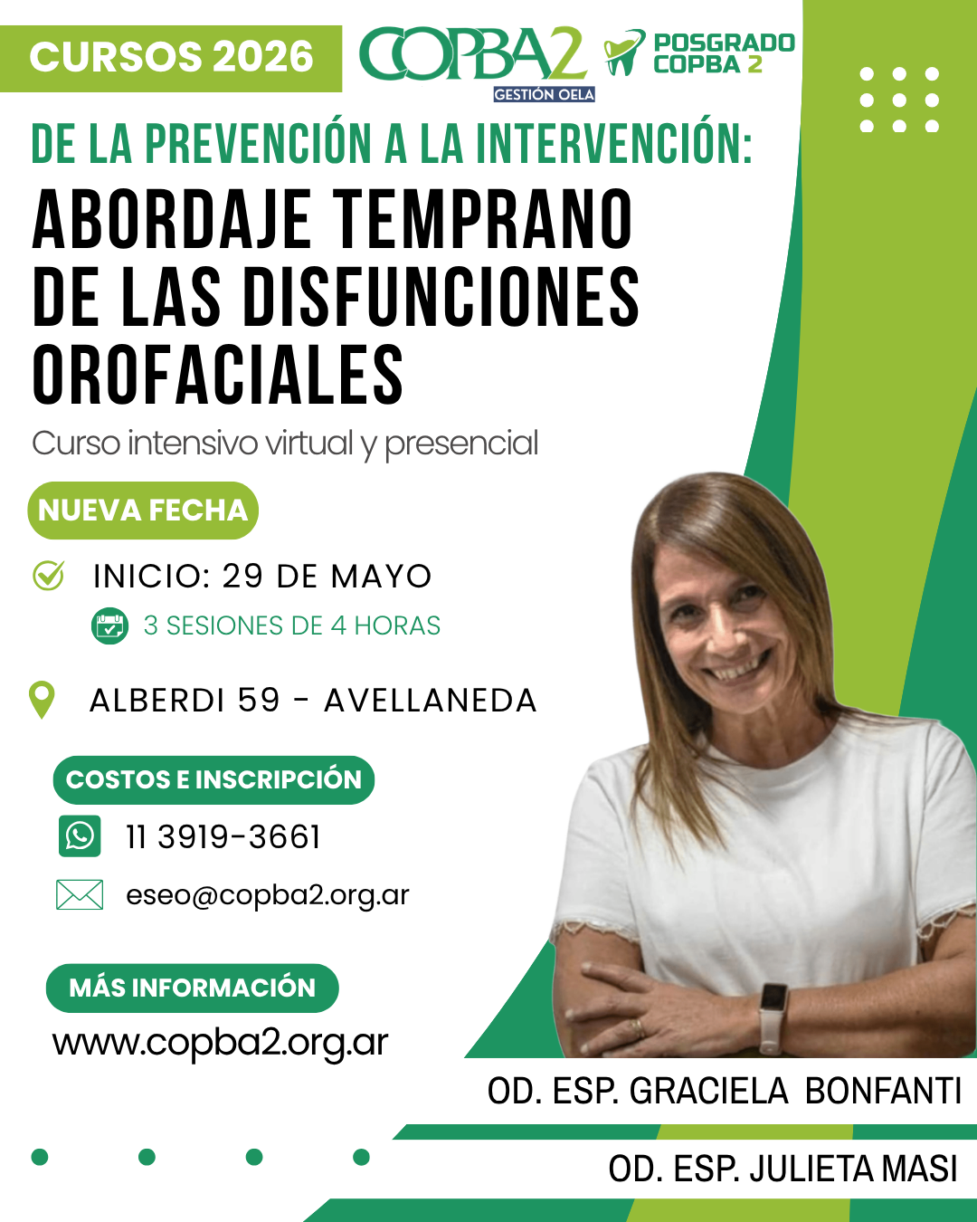 En este caso, se trata del curso «De la prevención a la intervención: abordaje temprano de las Disfunciones Orofaciales», a cargo de las especialistas Od. Graciela Bonfanti y la Od. Julieta Masi. El curso intensivo virtual y presencial se realizará a lo largo de 3 sesiones, con inicio el viernes 29 de mayo.