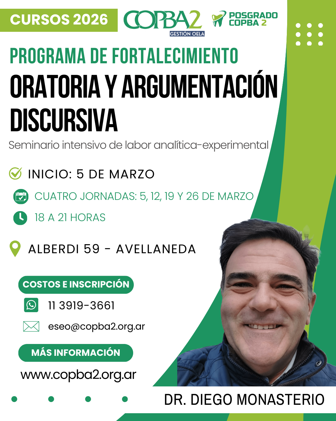 En este caso, se trata de un Programa de Fortalecimiento en «Oratoria y Argumentación Discursiva», a cargo del especialista Dr. Diego Monasterio. El seminario intensivo es de modalidad híbrida, con una extensión de cuatro jornadas con comienzo el 5 de marzo, de 18 a 21 horas.