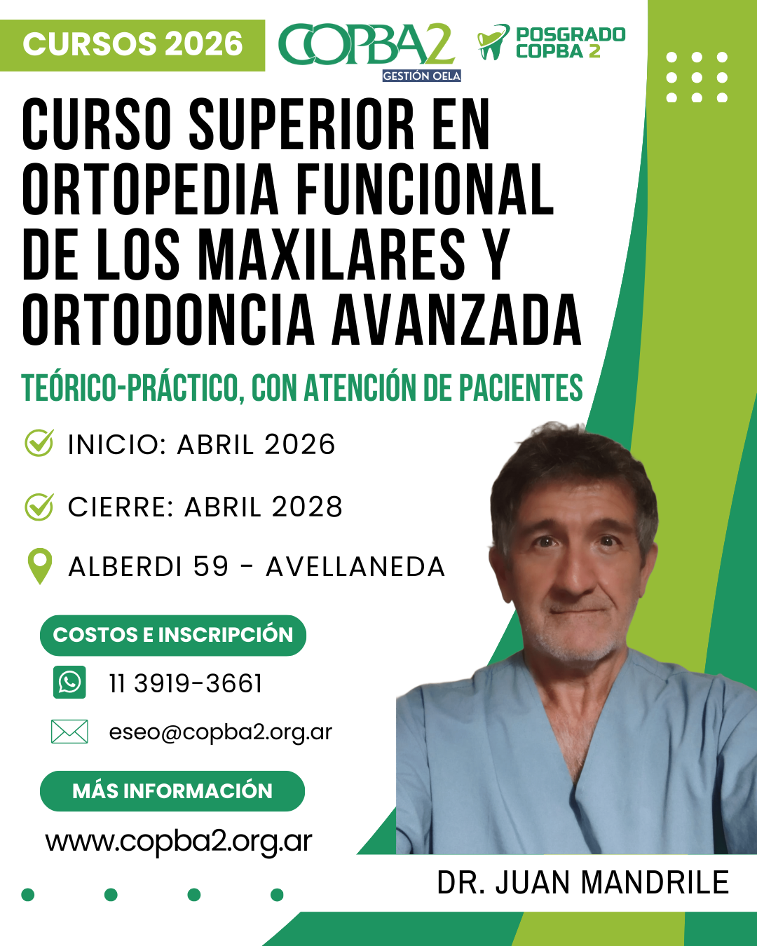 En este caso, se trata de una nueva edición del «Curso superior en Ortopedia Funcional de los Maxilares y Ortodoncia Avanzada», a cargo del especialista, Dr. Juan Mandrile.