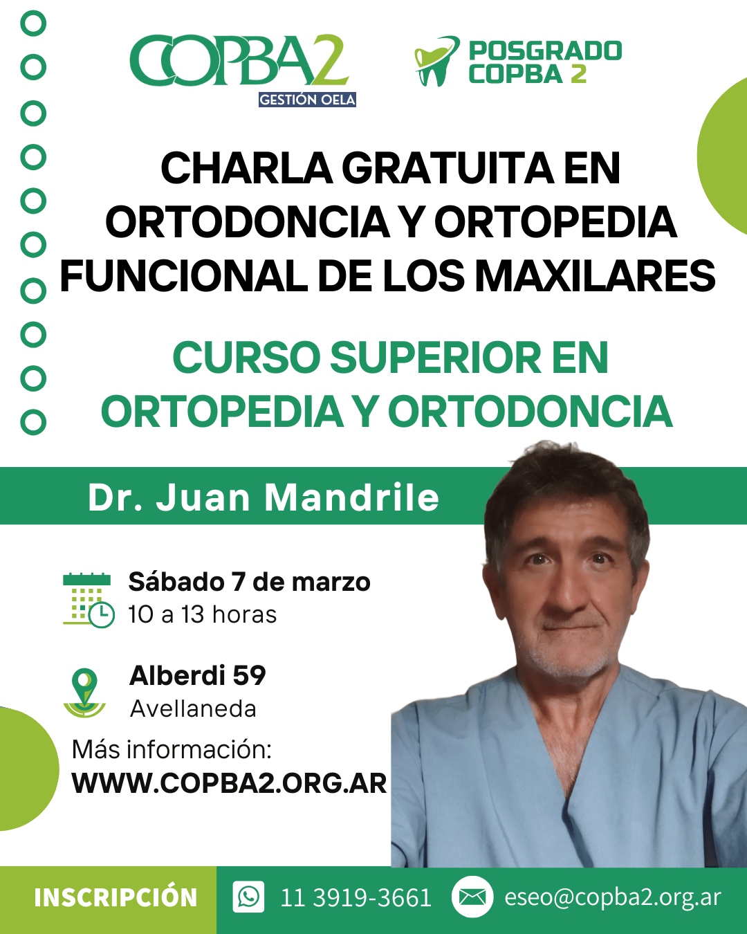 Para aquellos odontólogos que quieran conocer todos los detalles del curso, el Dr. Juan Mandrile realizará una Charla Gratuita en Ortodoncia y Ortopedia Funcional de los Maxilares, el sábado 7 de marzo de 10 a 13 horas en el Colegio.