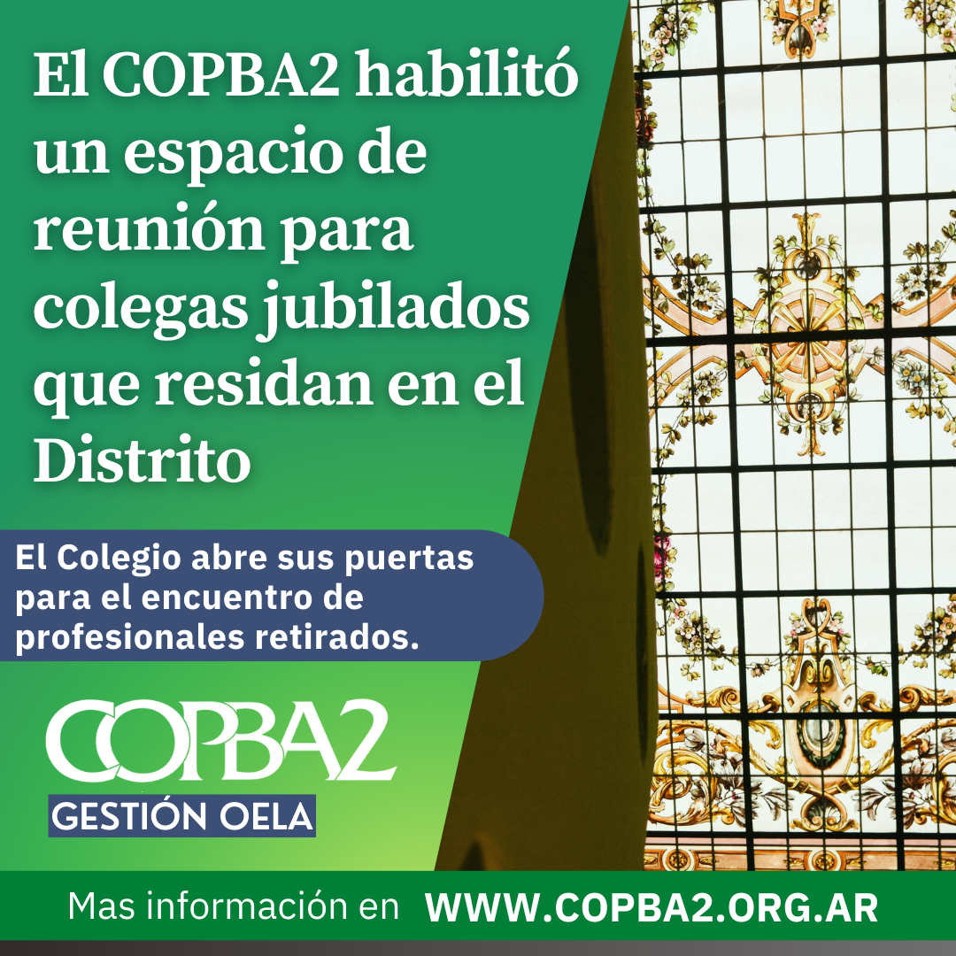 El Colegio de Odontólogos de la Provincia de Buenos Aires Distrito II (COPBA2) a través de una resolución de su Consejo Directivo, habilitó un nuevo espacio de reunión para colegas jubilados en la sede de la institución (Alberdi 59-Avellaneda) con todas las comodidades necesarias.