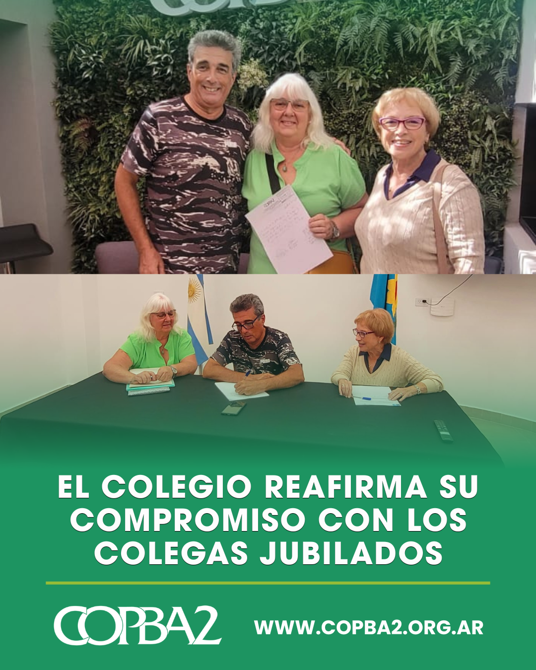El Colegio de Odontólogos de la Provincia de Buenos Aires Distrito II (COPBA2) se reunió con las colegas Norma Massaro y Silvia Miguelez, de la agrupación Odontólogos Bonaerenses por una nueva Caja, para abordar la situación crítica que atraviesan nuestros colegas jubilados.Durante el encuentro, se apoyó el pedido de un bono urgente que permita paliar los efectos de la crisis y acompañar a quienes ya han dedicado su vida a la profesión.